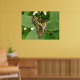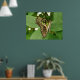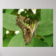 Cette belle affiche présente une photo d'un beau papillon tropical. Il a de belles marques vertes irisées sur toutes ses ailes. Il a ses ailes pliées tandis qu'il repose sur quelques feuilles. La photo a été prise en utilisant la macro photographie pour un résultat étonnamment détaillé.
