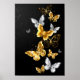 Or, bijoux et papillons blancs sur arrière - plan noir. Papillon doré.
