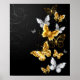 Or, bijoux et papillons blancs sur arrière - plan noir. Papillon doré.