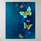 Affiche Papillons d'or sur un Arrière - plan bleu