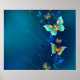 Affiche Papillons d'or sur un Arrière - plan bleu