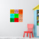 OEuvre murale avec motif aigu d'empreintes de pattes de chiens noirs en carré de différentes couleurs. Design décoratif original. Idée cadeau pour les amoureux de les chiens.