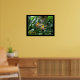 Montré sur du papier d'affiche mat de valeur, cet oiseau de paradis étend ses ailes en couleurs pour ravir les bleus royaux, violets, verts et jaunes. Bordure noire.