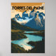 Affiche de voyage traditionnelle du parc national Torres Del Paine.