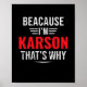 Parce que je suis Karson c'est pourquoi Nom cadeau de Fête des pères de Noël. Un cadeau parfait pour votre père, maman, papa, hommes, femmes, amis et membres de la famille le jour de Thanksgiving, Noël, Fête des mères, Fête des pères, 4 juillet, 1776 Jour indépendant, Fête des anciens combattants, Fête de l'Halloween, Fête de Patrick