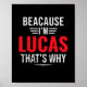 Parce que je suis Lucas c'est pourquoi Nom cadeau de Fête des pères de Noël. Un cadeau parfait pour votre père, maman, papa, hommes, femmes, amis et membres de la famille le jour de Thanksgiving, Noël, Fête des mères, Fête des pères, 4 juillet, 1776 Jour indépendant, Fête des anciens combattants, Fête de l'Halloween, Fête de Patrick
