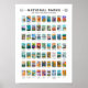 Affiche Parcs nationaux des États-Unis Liste Vintage