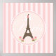 Joli et super poupée design avec une tour Eiffel marron avec un ruban rose sur le dessus. Fleurs roses douces à la base des tours, rayures roses et autres ornements délicats.