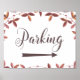 Panneau de stationnement directionnel sur le thème de l'automne avec une flèche pointant vers la droite.