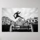 L'athlète parkour effectue un saut de grande précision à venise. Noir & Blanc