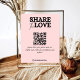 Cette affiche Modern Share the Love mariage QR CODE affiche est parfaite pour un mariage élégant.