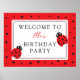 Affiche de bienvenue du parti Anniversaire de enfant de Little Ladybug. Idéal pour la fête d'anniversaire des filles thème coccinelle.