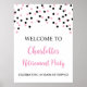 Affiche de la partie de retraite avec confettis noir et rose.