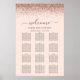 Cet élégant tableau de sièges de mariage comporte une bordure supérieure de parties scintillant en faux or rose sur un arrière - plan rose vif. Le mot "Welcome" apparaît dans un script moderne d'écriture manuscrite gris charbon de bois, avec les noms des invités disposés par les tableaux ci-dessous. D'une capacité de 120 personnes (12 tables, 10 personnes par table).