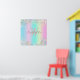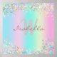 Poster de la Parties scintillant Holographique Unicorn - Poster aux couleurs étincelantes et mêlées turquoise, rose et mauve, parties scintillant jaune clair. Vous pouvez personnaliser cette affiche en y ajoutant votre nom et vos initiales.