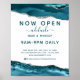 Parties scintillant moderne Blue Silver Salon de coiffure Panneau ouvert. Design de typographie élégant.