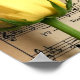Partition et notes musicales avec une belle rose jaune posée sur le dessus. Un cadeau parfait pour le musicien dans votre vie.