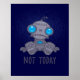 Illustration vectorielle d'un petit robot mignon mais triste avec les yeux bleus assis sur le sol avec le texte Pas aujourd'hui. Mots clés : robot, droid, androïde, machine, futur, triste, contrarié, mignon, humour, dessin animé, chagrin, mal, déprimé, dépression, solitaire, adorable, bleu, gris, pas, aujourd'hui, occupé, procrastinate, paresseux