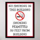 Cet établissement est non-fumeurs, merci de ne pas fumer. Panneau anti-tabac. Il est permis de fumer à 50 pieds du bâtiment.