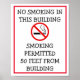 Cet établissement est non-fumeurs, merci de ne pas fumer. Panneau anti-tabac. Il est permis de fumer à 50 pieds du bâtiment.