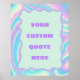 This soft and dreamy poster features a soothing blend of pastel lavender, pink, and blue, creating a gentle gradient backdrop for your custom quote. The calming color palette adds a touch of elegance and serenity to any room, making your personalized message feel warm and uplifting. Perfect for bedrooms, nurseries, offices, or cozy reading nooks, this customizable design brings a peaceful, modern aesthetic to any space. A beautiful way to showcase words that inspire you.