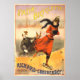 Une femme habillée à la mode patine le long de la rive d'un étang gelé. Elle porte une paire de patins à rouleaux vintages en ligne, la Patin-Bicyclette, avec un homme en patins à glace tombé sur l'étang derrière elle. D'un chromolithographe original du 19ème siècle (1890) par Jean de Paléologue. Tous droits réservés © 2013 padre art