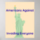 Make a Bold Statement for Peace Celebrate the true spirit of liberty with this striking patriotic poster. Featuring a minimalist silhouette of the Statue of Liberty against a warm, vintage-inspired background, this design carries a powerful message: "Americans Against Invading Everyone."