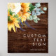 Cette carte en bois de tournesol de campagne audacieuse et ces cadeaux personnalisés sous forme de poster sont parfaits pour votre simple mariage champêtre classique bohème en été dans votre arrière-cour de grange. Le design présente un bouquet de tournesols jaunes dorés et orange rustiques à l'aquarelle vintage, de feuillage de eucalyptus vert sauge moderne élégant, et une rose ivoire blanche. Le design est idéal pour un mariage automnal décontracté en plein air dans un style minimaliste. N'hésitez pas à nous contacter si vous avez des questions concernant le design du produit ; à votre santé !