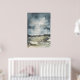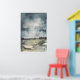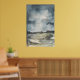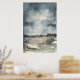 Paysage Abstrait Foncé neutre en gris bleu, Aquarelle Ciel de nuit orageuse, Verticale. Impression murale minimaliste.