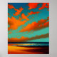 Affiche Paysage Abstrait avec coucher de soleil turquoise