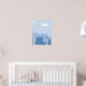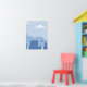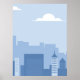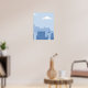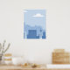 Une peinture murale minimaliste dans les tons bleus avec des nuages blancs et des gratte-ciel. Cette affiche verticale sera parfaite pour la décoration de la maison ou du bureau.