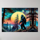 Sasquatch coloré marchant sur la montagne sous une pleine lune IA Art généré par minx267