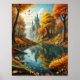 Affiche Paysage d'automne rêvé avec château magique et riv