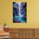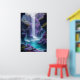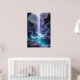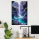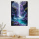 Un tableau numérique représente une cascade sereine qui descend en cascade sur une falaise rocheuse. L'eau est d'un blanc doux et éthéré, contrastant avec les teintes violettes profondes des formations rocheuses environnantes. Des feuillages violets luxuriants et vibrants ornent les falaises, ajoutant une touche de couleur au paysage par ailleurs feutré.