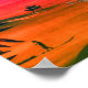 Belle Poster Colorée Avec De L'Art Japonais Représentant Une Belle Scène De Coucher De Soleil Et De Nature Orange Et Rose.
