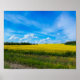 Nature Paysage Paysage Paysage rural Canola Champs florissants Forêt Nuages de cabanes Ciel Biélorussie Poster pour ajouter à votre collection de souvenirs de voyage. Un cadeau cadeau/cadeau cool pour tous ceux qui aiment les objets de design personnalisés, les vibrations positives, la nature, les voyages, est d'une descendance biélorusse etc. Terrain, forêt, arbres, nuages, bleu, jaune et vert, paysages d'été.