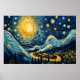 Ville de nuit avec lumière de lune, ciel étoilé et sentier légerS Van Gogh Illustration de style pour l'art mural et la décoration
