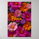 Affiche Peace Out Hippie Floral Neon Peace Sign Pattern