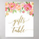 Cette enseigne "table cadeau" de fleur de poitrine rose et pêche est parfaite pour un baby shower de filles élégant. Le design floral présente un bel agencement de pivoines d'aquarelle dans des tons de rougeur et de corail assortis à de somptueuses calligraphies de feuilles d'or imitation. Remarque : Ce design ne comporte pas de véritable feuille d'or. C'est un graphisme de haute qualité fait pour ressembler à du papier doré.