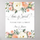 Affiche Pêche Ivoire Rose Floral L'amour est doux Prenez u