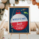 Symbole de bienvenue d'anniversaire avec un adorable thème de la pêche. Personnalisez avec vos informations ou cliquez sur "cliquer pour customiser plus loin" pour ajuster le type de police, la taille, la couleur.