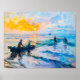 Affiche Pêcheurs au coucher du soleil Scène côtière impres