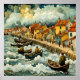 Affiche Pêcheurs en bateau à Stormy Sea Van Gogh Style