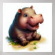 Affiche Peinture 3D Aquarelle d'un Hippopotame mignon