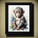 Peinture à l'aquarelle du bébé chimpanzé quittant la nurserie Le format est de 5:4. Il a été conçu pour être imprimé en 5"×4", 10"x8", 20"×16", 30"x24"