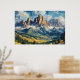 Les Dolomites Sass Rigais et Furchetta ont inspiré les sommets de montagne. Impression de peinture à l'huile générée. L'image haute résolution assure une qualité nette sur n'importe quelle taille.