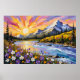Affiche Peinture à l'huile solaire de montagne vibrante