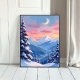 Affiche Peinture aquarelle d'hiver de lune de montagne