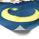 Jolie peinture aquarelle fantaisiste de vache sautant par-dessus la lune dans des tons de blanc, marron, jaune et bleu foncé noir. © Peinture originale unique à l'aquarelle par Sarah Trett pour www.mylittleeden.com