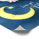 Jolie peinture aquarelle fantaisiste de vache sautant par-dessus la lune dans des nuances de blanc, marron, jaune et bleu foncé. Actuellement lu je t'aime jusqu'à la lune et retour ou vous pouvez personnaliser avec vos propres mots ou nom. © Peinture originale unique à l'aquarelle par Sarah Trett pour www.mylittleeden.com